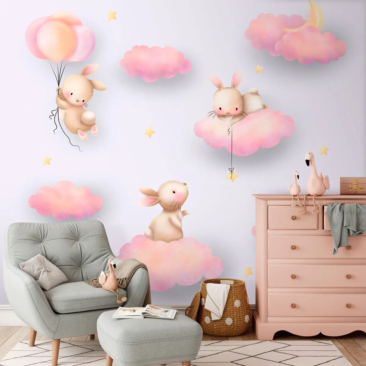 Фототапет Зайчета на облаците в детски стил Nr u96613