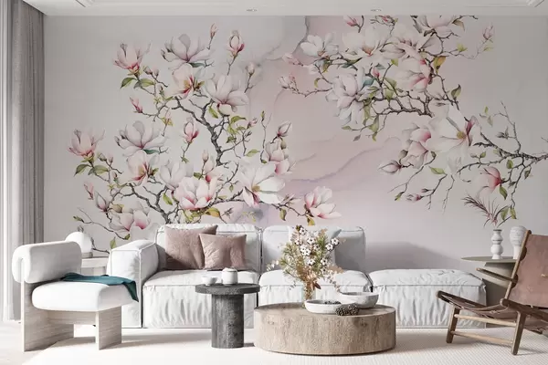 Фототапет Цъфтящи магнолии на мраморен фон Nr u96114