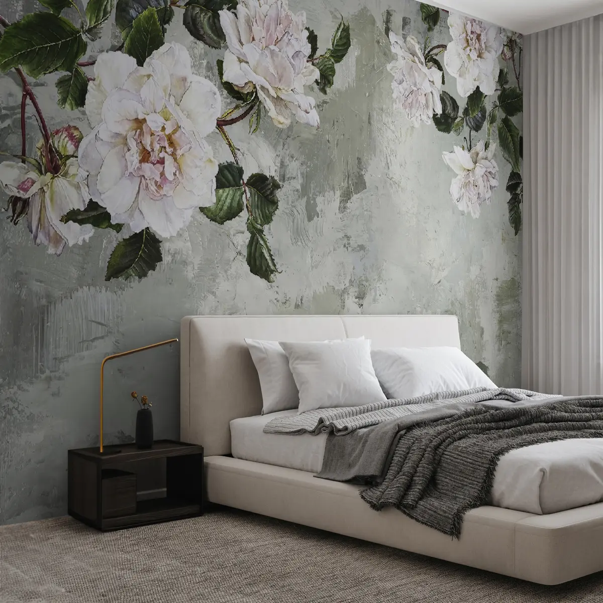 Фототапет Цъфнали клони на фона на опърпана стена Nr u37301