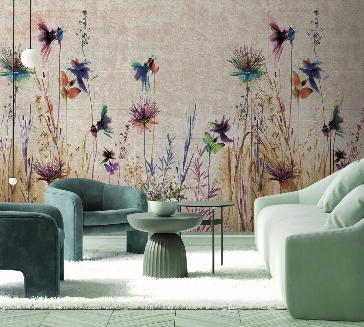 Фототапет Необичайни високи цветя на бежов фон Nr u93672