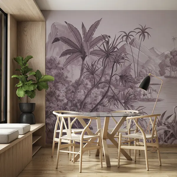 Фототапет Черно-бели тропици в лилави цветове Nr u59040v3