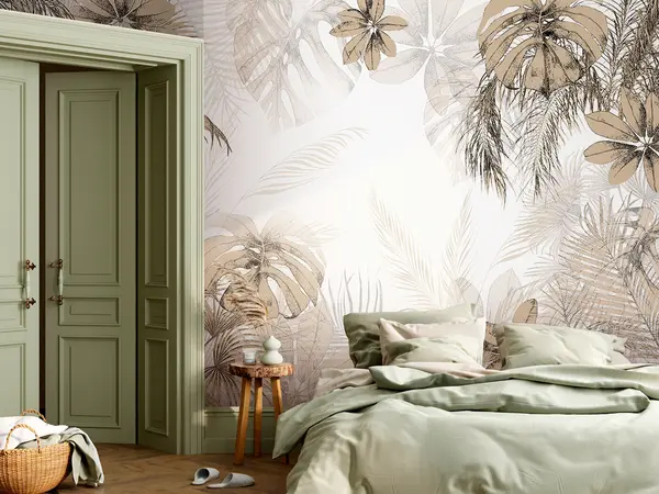 Фототапет Тропически дървета и листа в гората на бял фон Nr u96472