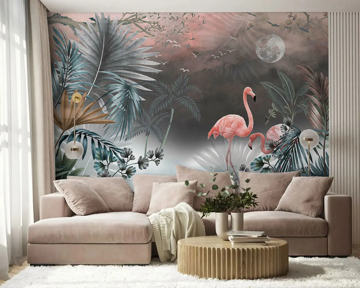 Фототапет Фламинго и растения Nr u78601