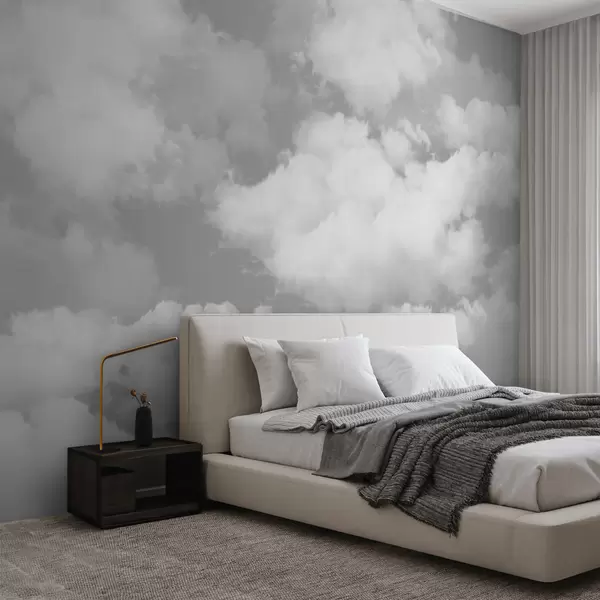 Фототапет Бели облаци върху сиво небе са нова тенденция в интериора Nr u94178
