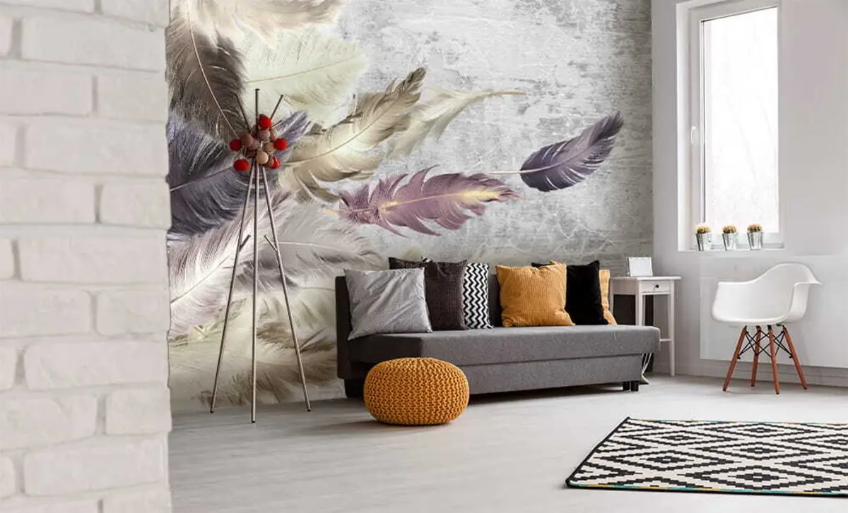 Фототапет Цветни пера върху бетонна стена Nr u21165