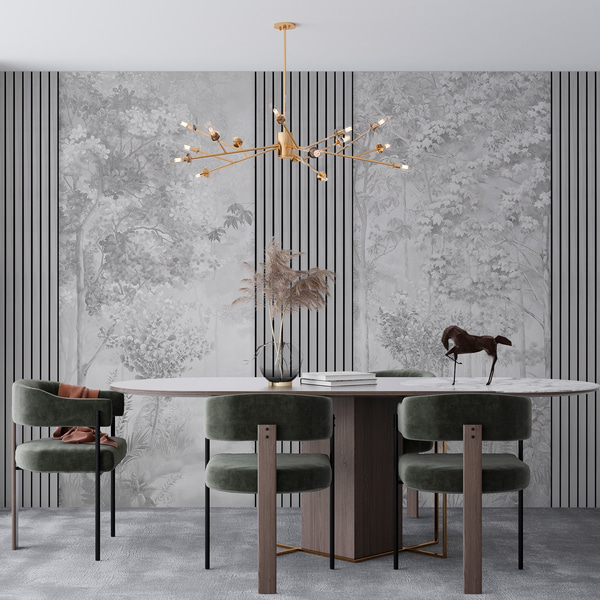 Фантазийни линейни дървета с буйни корони в елегантни тъмни смарагдови тонове