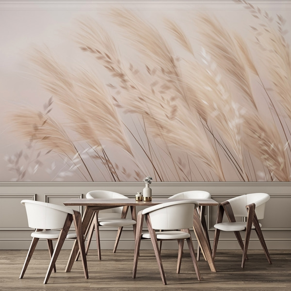 Тънки треви и пухкави семенни глави на топъл бежов фон