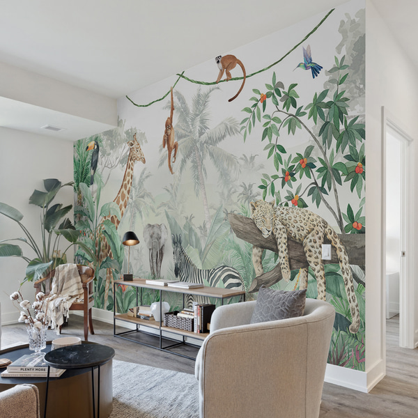 Мъглива гора край водата с чапли, мека, хладна палитра