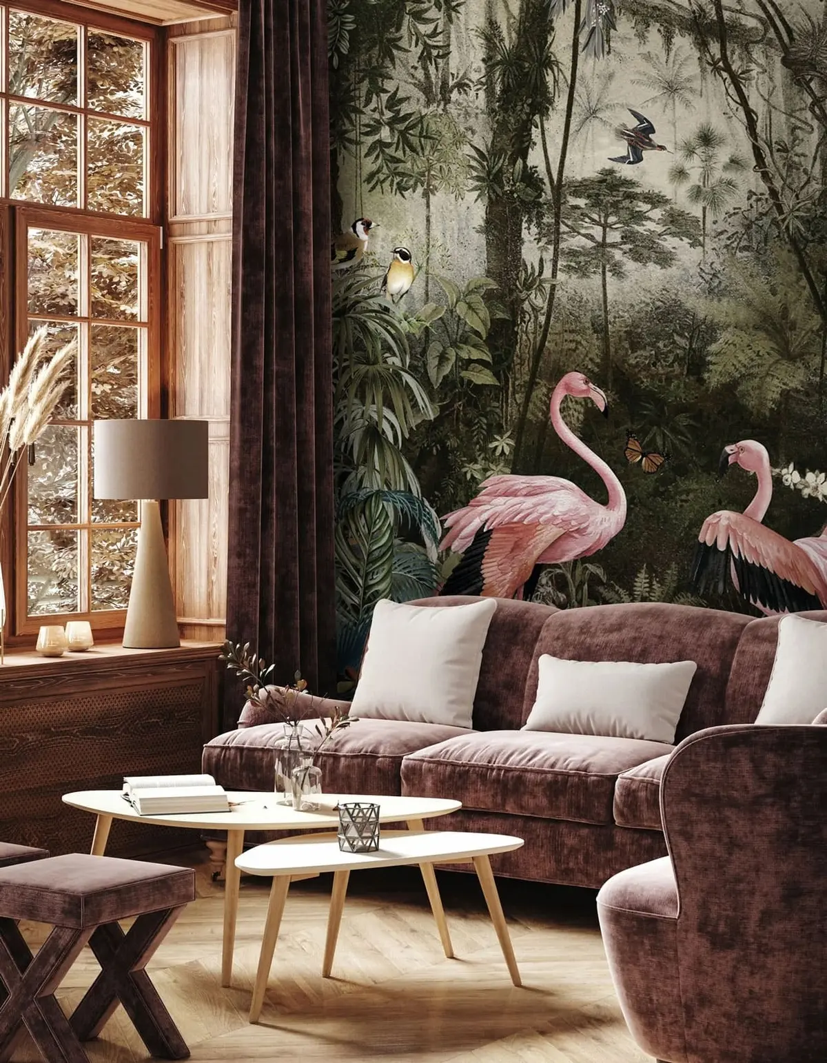 Фототапет Тропически птици и фламинго в джунглата Nr u73568