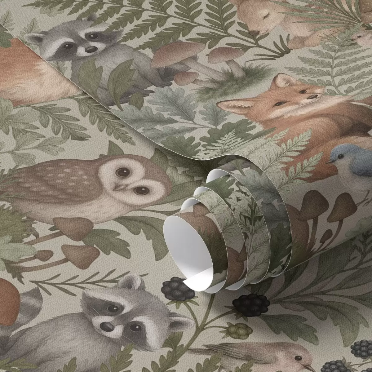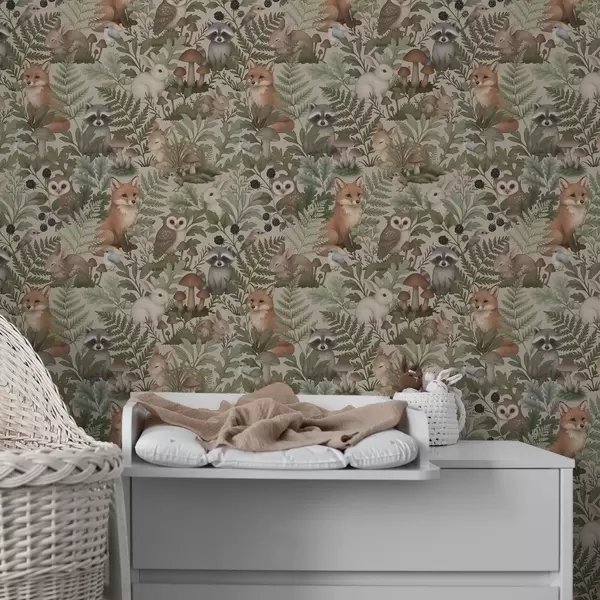 Тапет Горски животни, папрати и гъби на светлобежов фон Nr. a00880v1