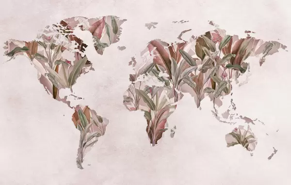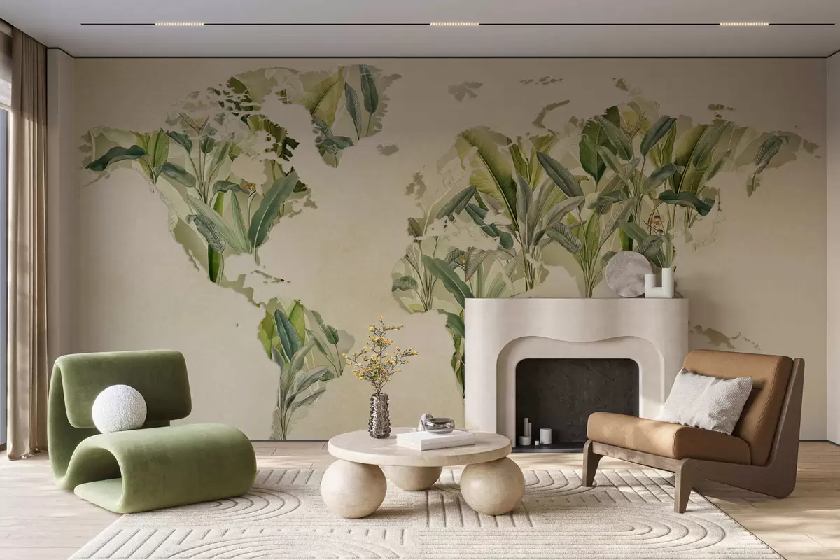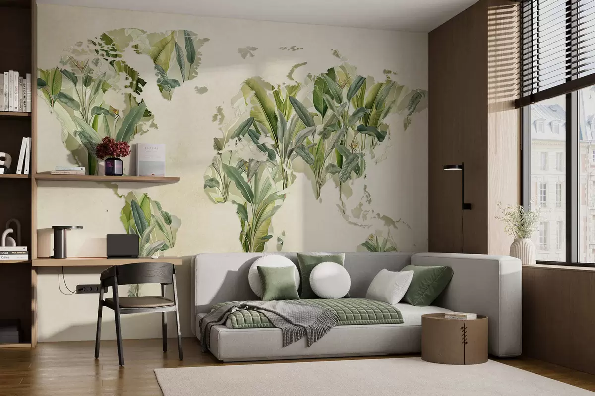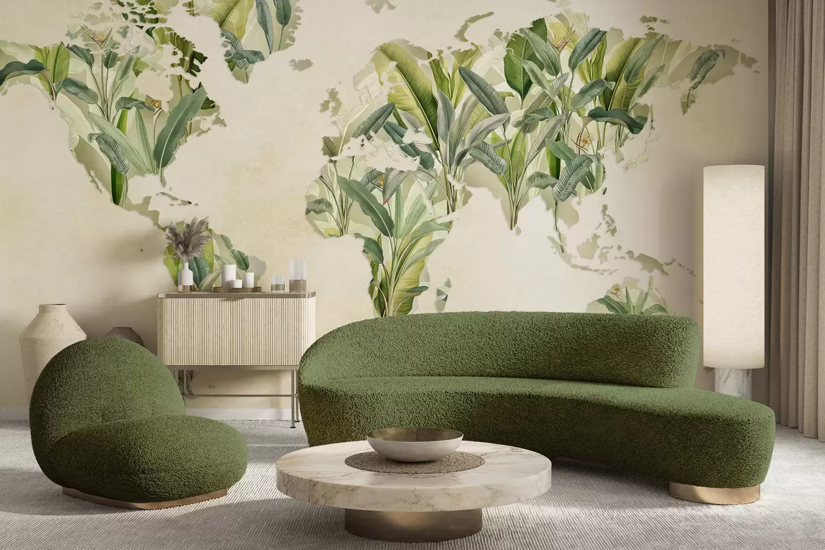 Фототапет Зелена карта на света, изработена от бананови листа Nr c00007