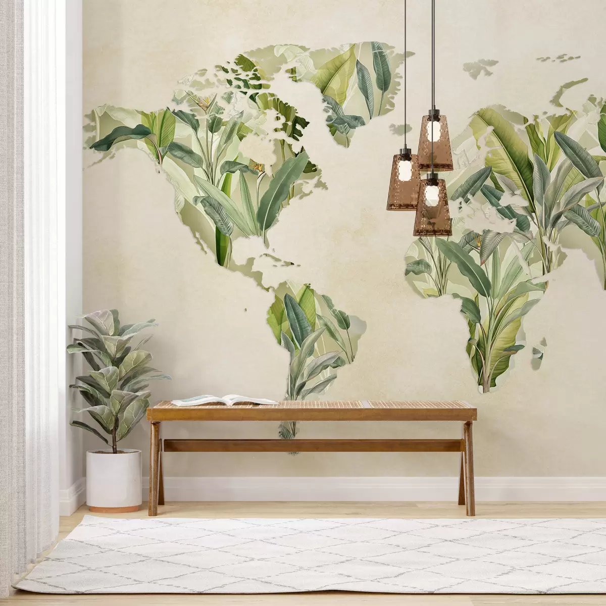 Фототапет Зелена карта на света, изработена от бананови листа Nr c00007