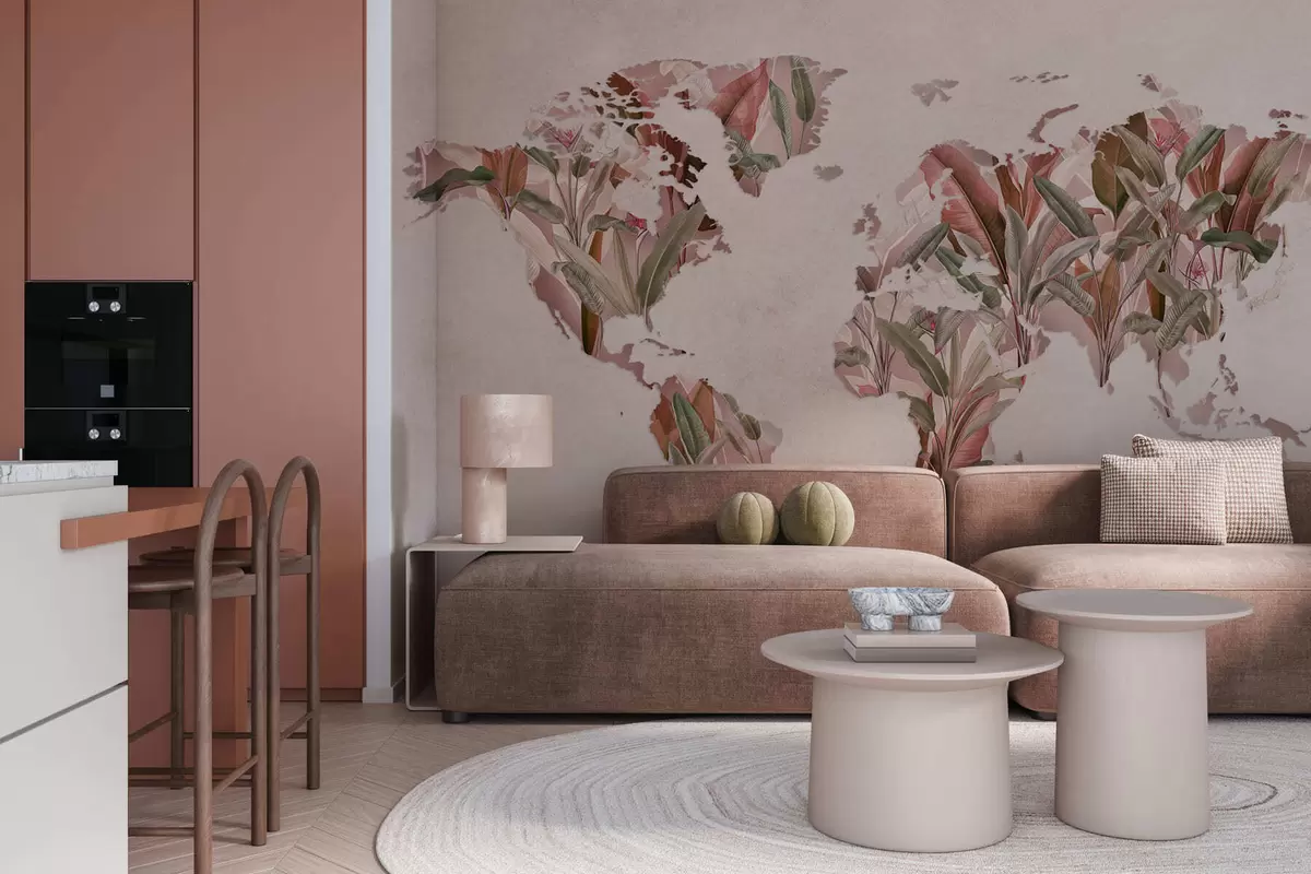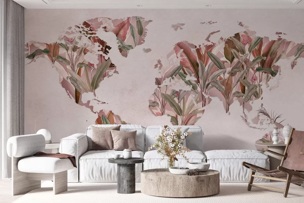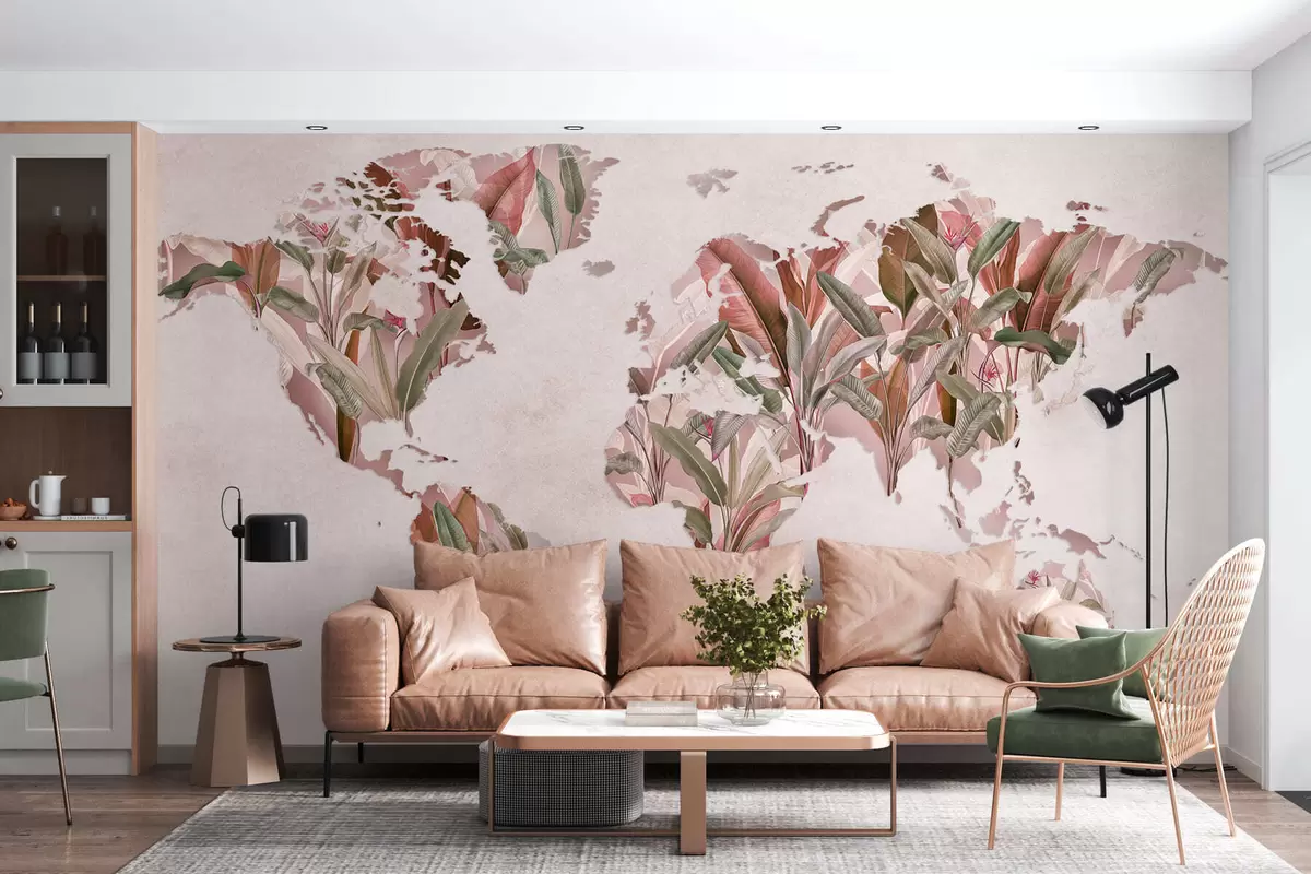 Фототапет Розова карта на света, изработена от бананови листа Nr c00007v2