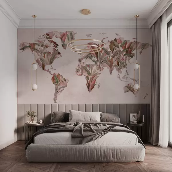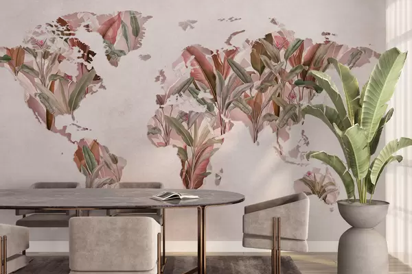 Фототапет Розова карта на света, изработена от бананови листа Nr c00007v2