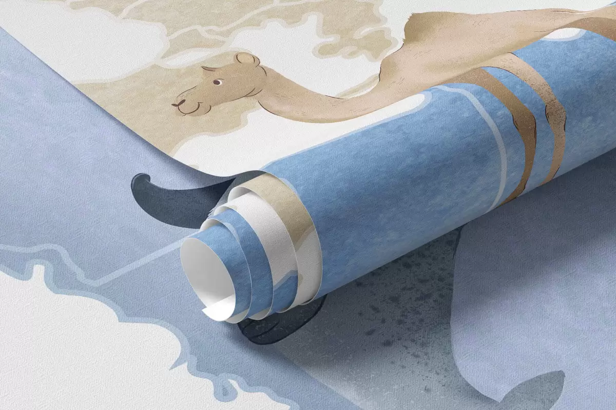 Фототапет Синя карта в акварелен стил с изображения на животни. Надписи на френски език Nr c00012frv1