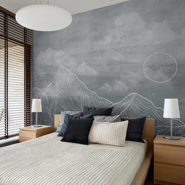 Фототапет Гръндж текстура с облаци и планини, сив цвят, изкуство на тема природа Nr u98838v1