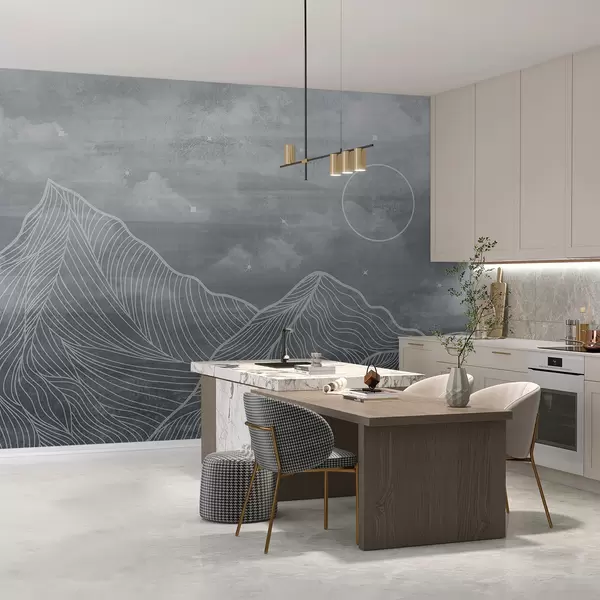 Фототапет Гръндж текстура с облаци и планини, сив цвят, изкуство на тема природа Nr u98838v1