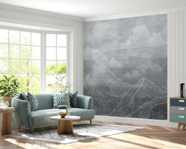 Фототапет Гръндж текстура с облаци и планини, сив цвят, изкуство на тема природа Nr u98838v1
