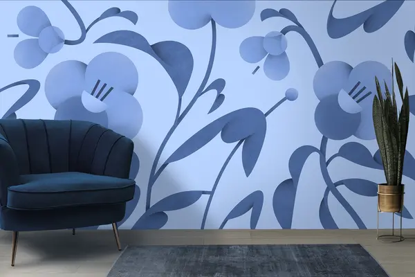 Фототапет Ботанически принт с декоративни цветя в синьо Nr u99196v8
