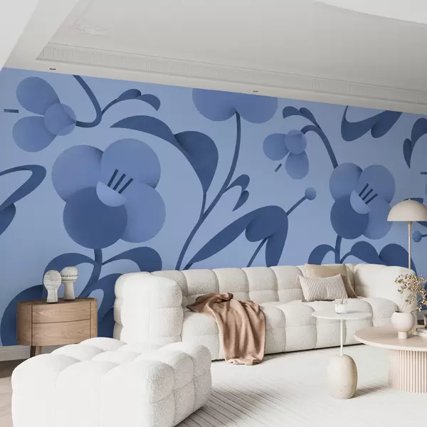 Фототапет Ботанически принт с декоративни цветя в синьо Nr u99196v8