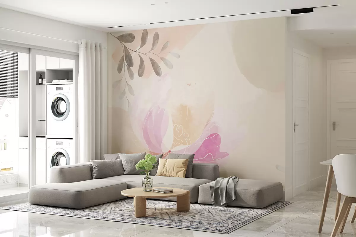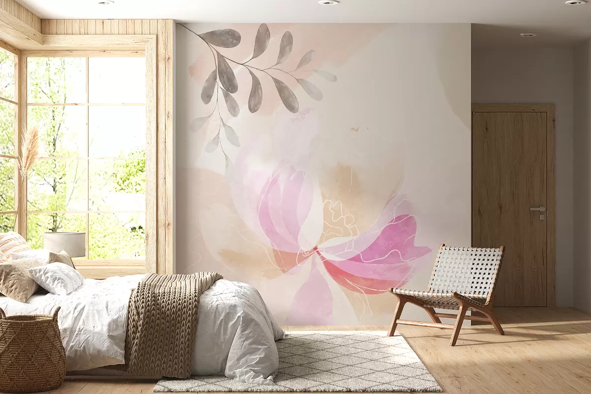 Фототапет голямо цвете, пастел, акварел, бежов цвят Nr w00396