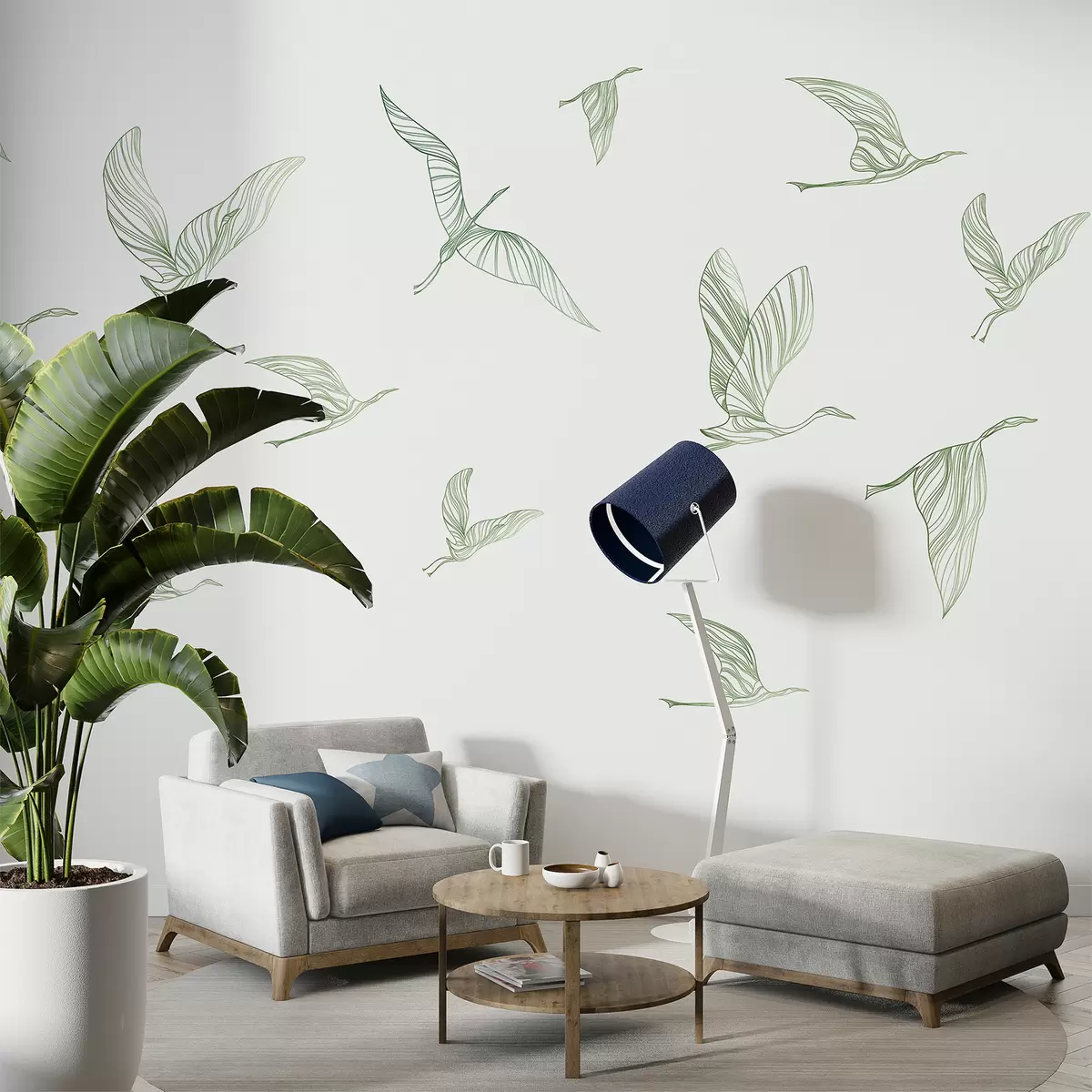 Фототапет Летящи птици, минимализъм, природа, зелени цветове Nr w00758v2