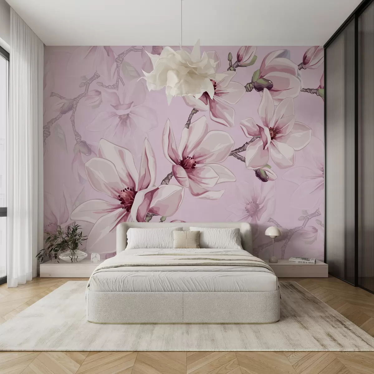 Фототапет деликатна розова магнолия отблизо Nr w00982