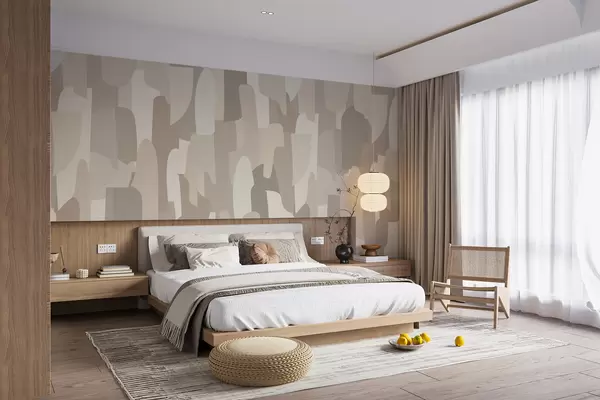 Фототапет абстрактно модерно изкуство тапет в бежови нюанси имитация на цветни парчета, за стилен интериорен дизайн Nr w00987