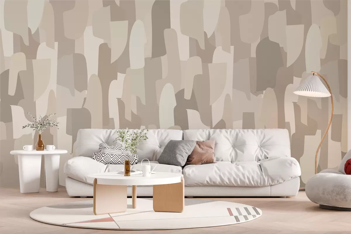 Фототапет абстрактно модерно изкуство тапет в бежови нюанси имитация на цветни парчета, за стилен интериорен дизайн Nr w00987