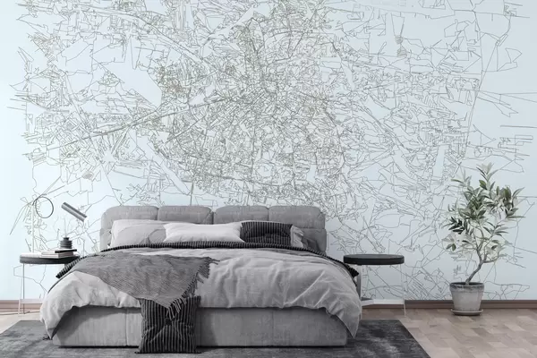 Фототапет Увеличена карта. Портрет на стенопис на град Лвов на светлосин фон Nr w01023