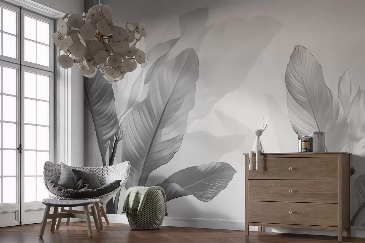 Фототапет Черно-бели листа Nr w01068