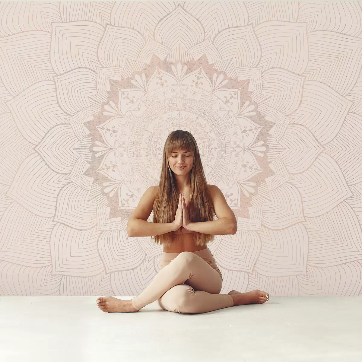 Фототапет Кръгла мандала, тапет за пространство за йога или за хармонизиране на личното пространство. Мандала за стена в топли пастелни цветове върху текстуриран неправилен фон Nr w01088