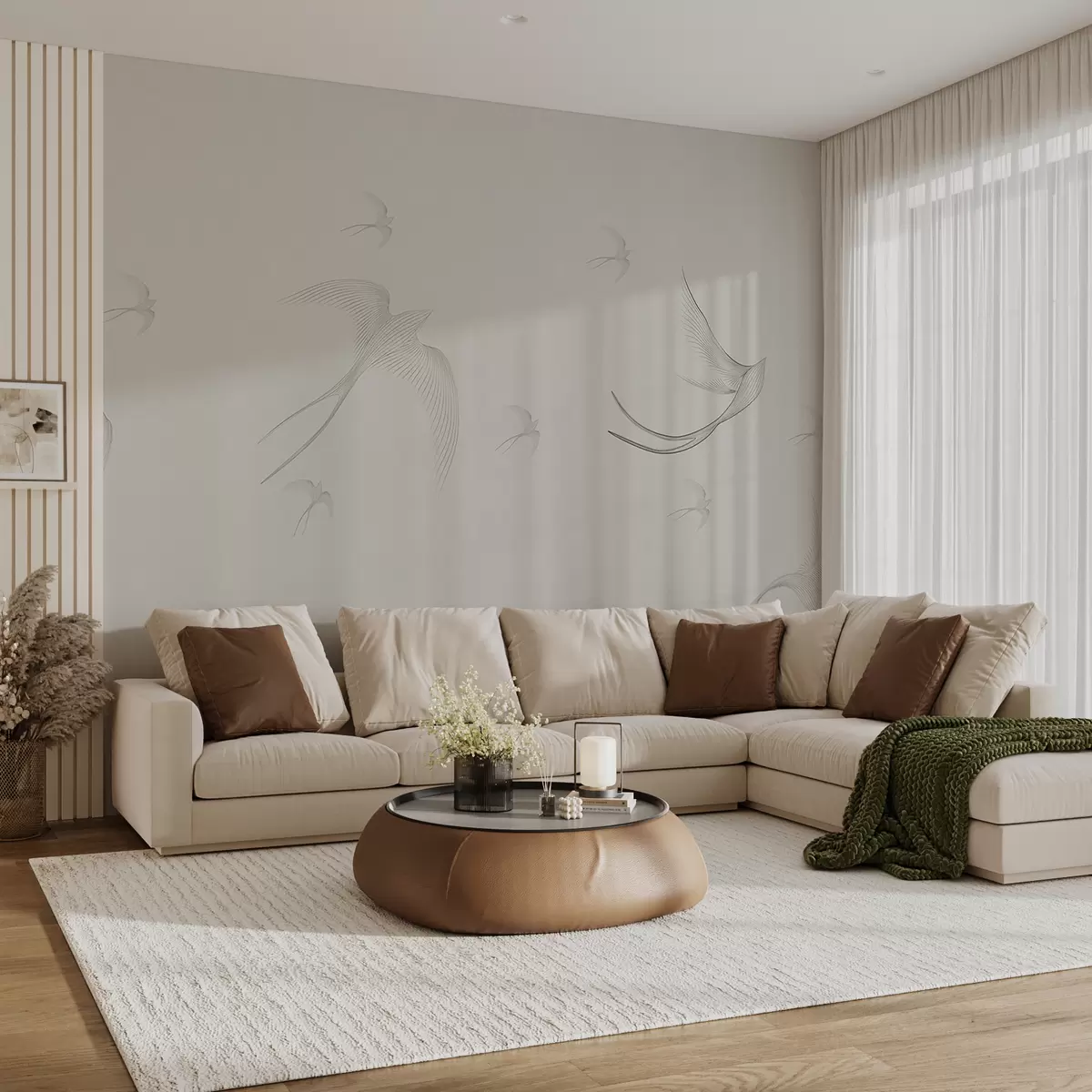 Фототапет Линейни лястовици на бежов фон Nr w01264v1