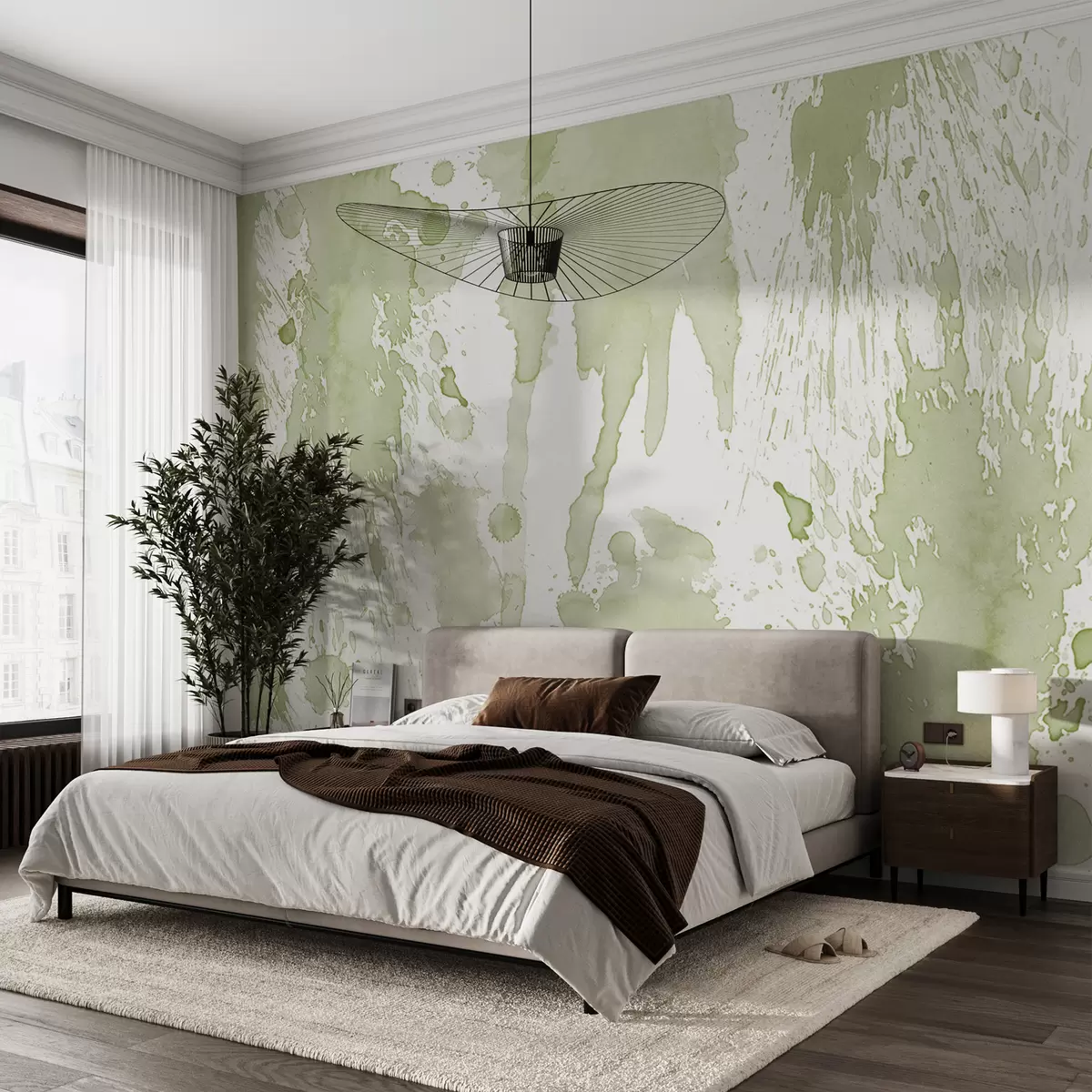 Фототапет Акварелни пръски, рисувана абстракция, зелен цвят Nr w01285