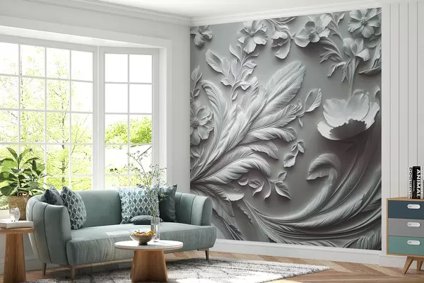 Фототапет Изящни релефни цветя и листа в сиви тонове Nr w01356v2