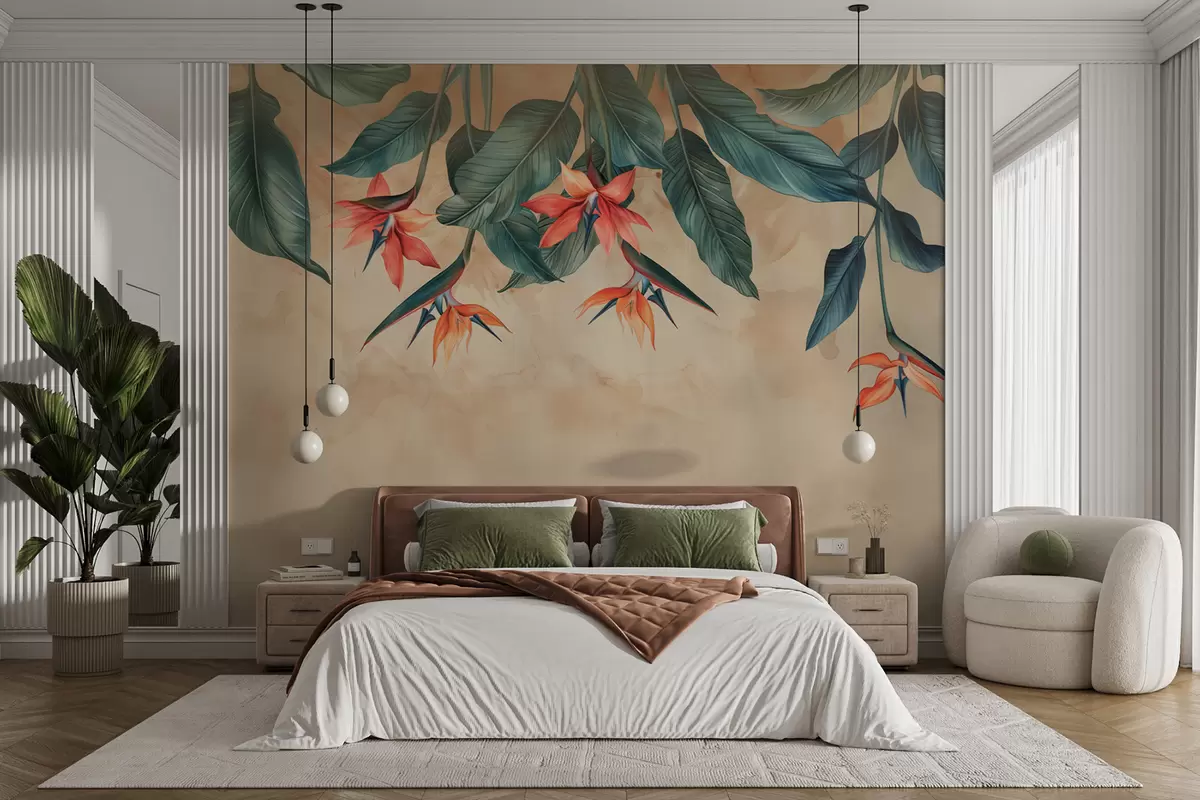 Фототапет Тропически цвят на бежов акварелен фон Nr w01485