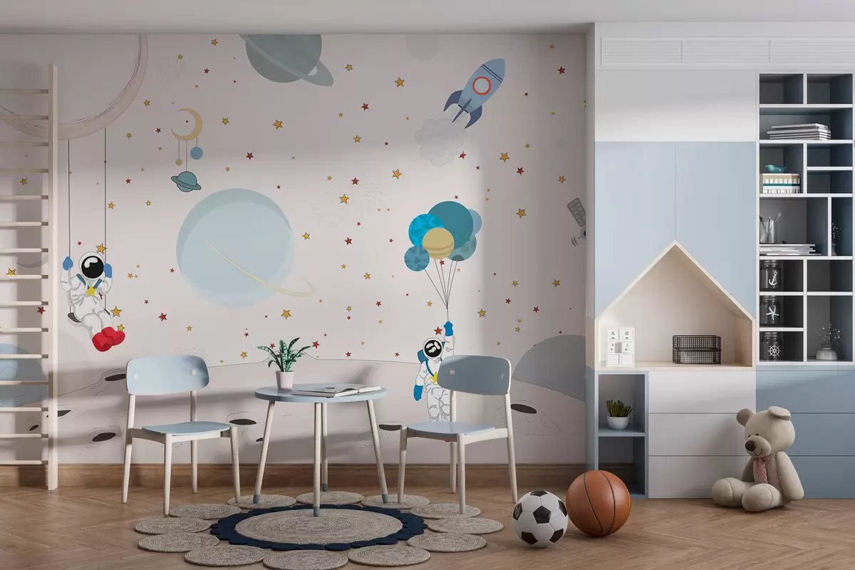 Фототапет Космически дизайн с астронавти, планети, ракети и звезди Nr w01489
