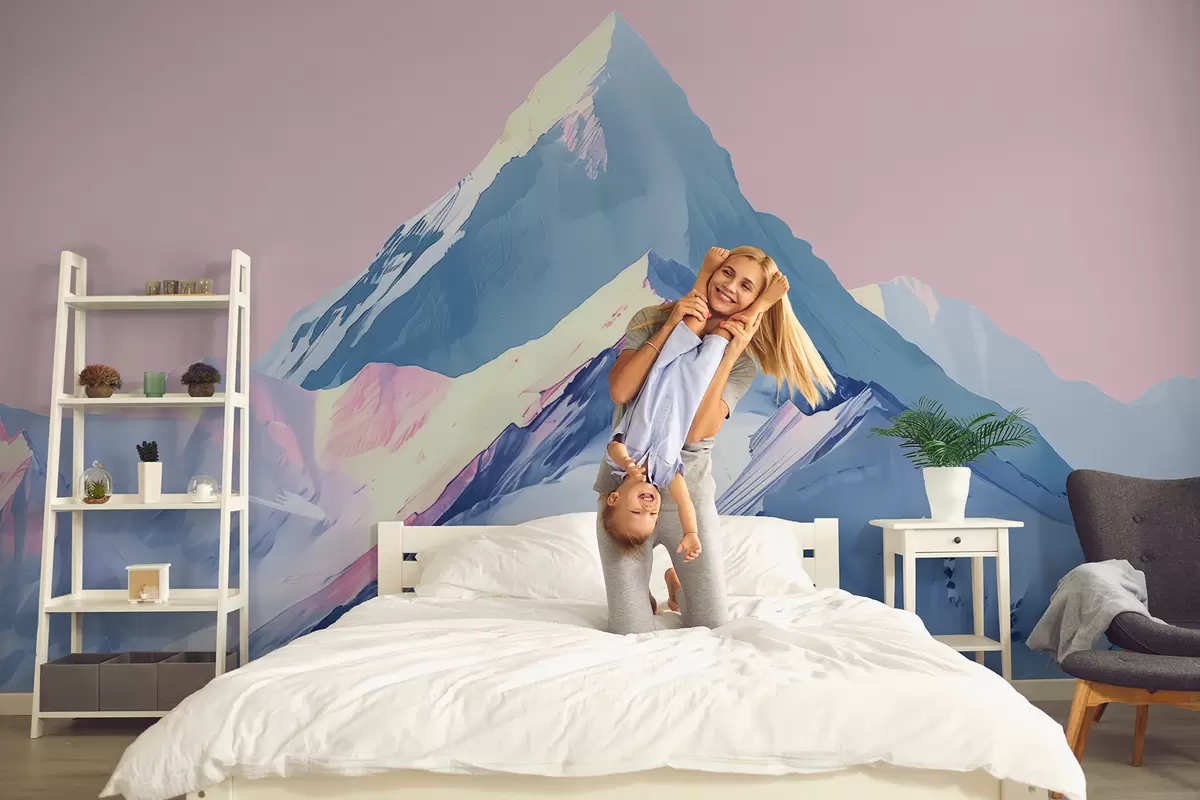 Фототапет Сини и розови планини в рисуван стил Nr w01497