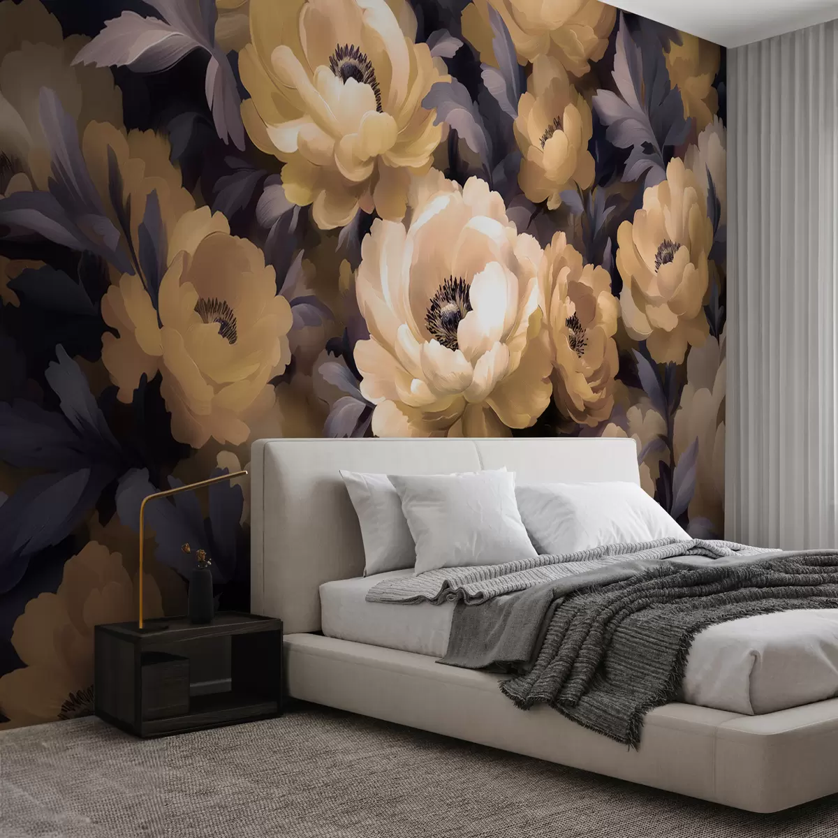 Фототапет Флорален стил на живопис с маслени бои, базиран на бежов и лилав цвят Nr w01581
