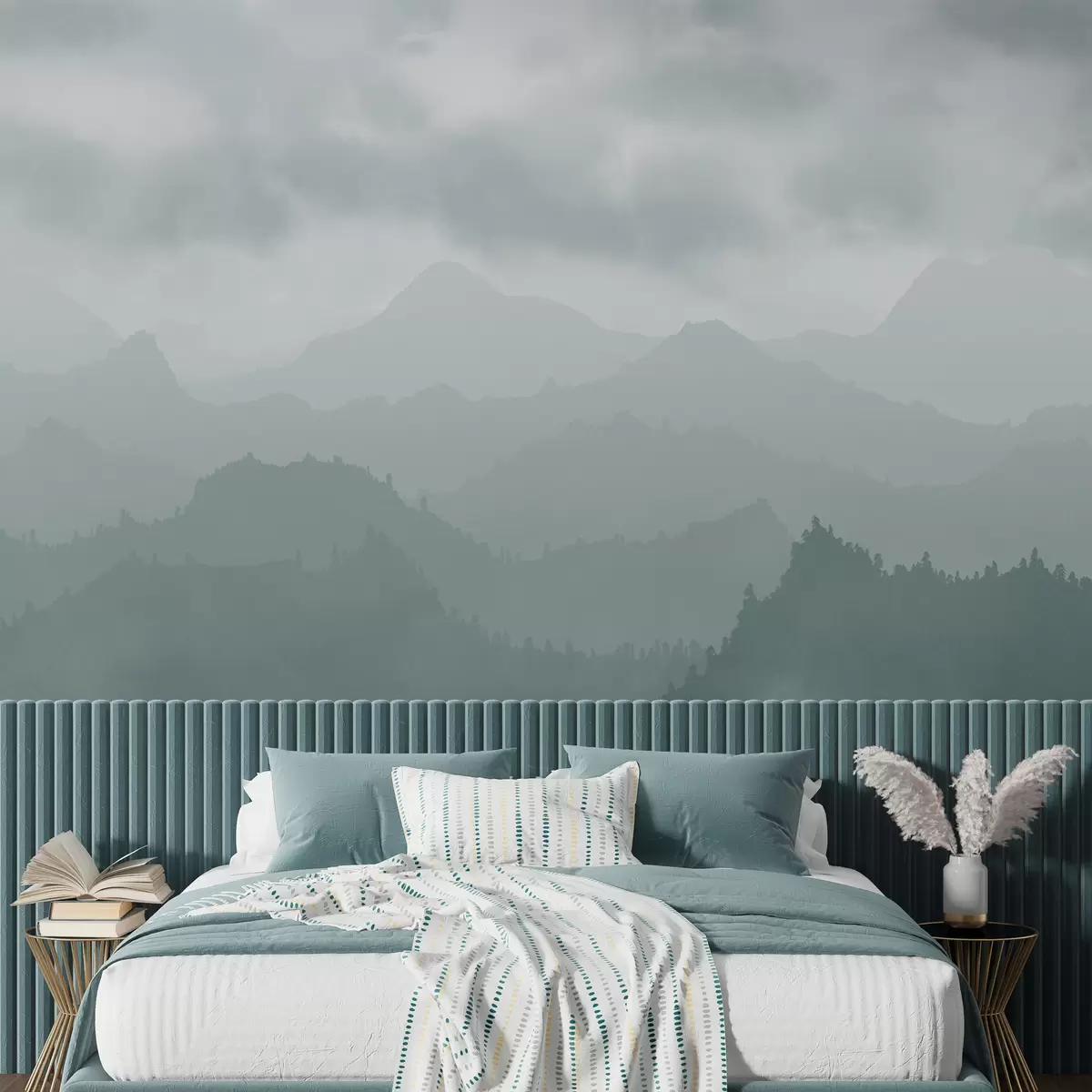 Фототапет Мъгливи планини със сини облаци в небето Nr w01637v2
