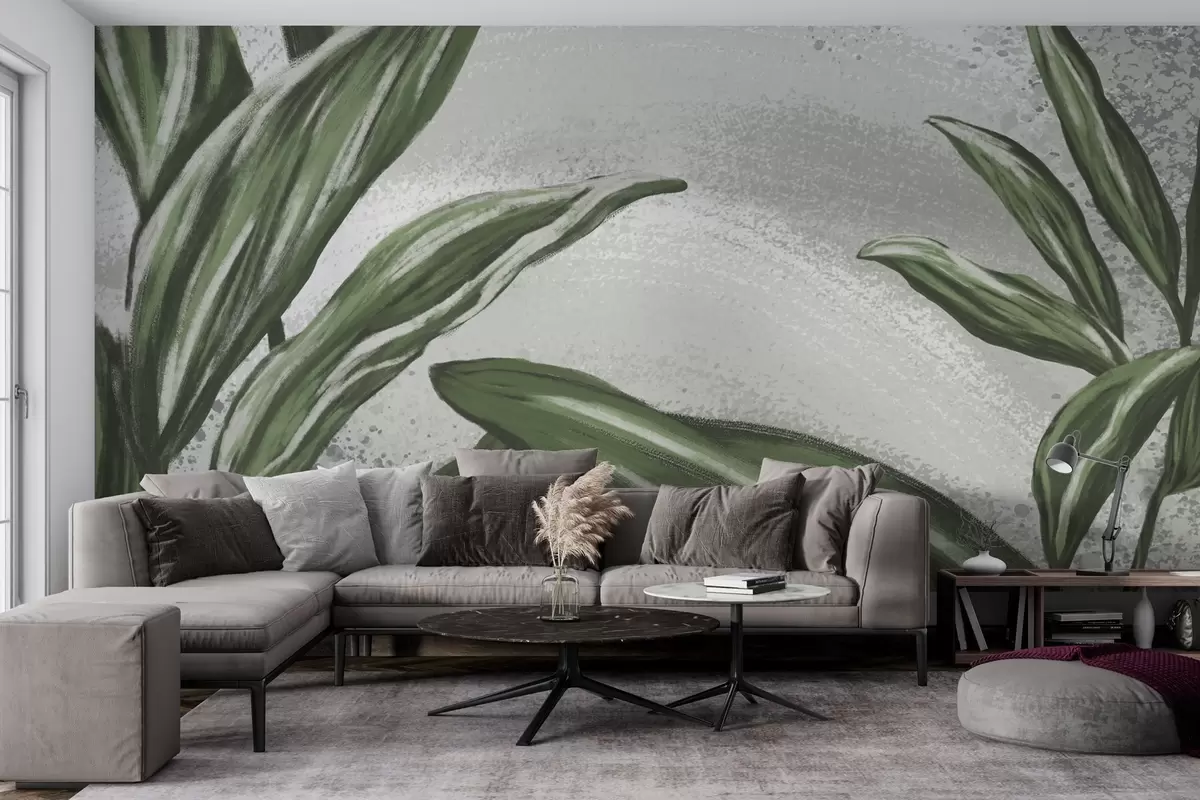 Фототапет Буйна зеленина на текстуриран фон Nr w01682