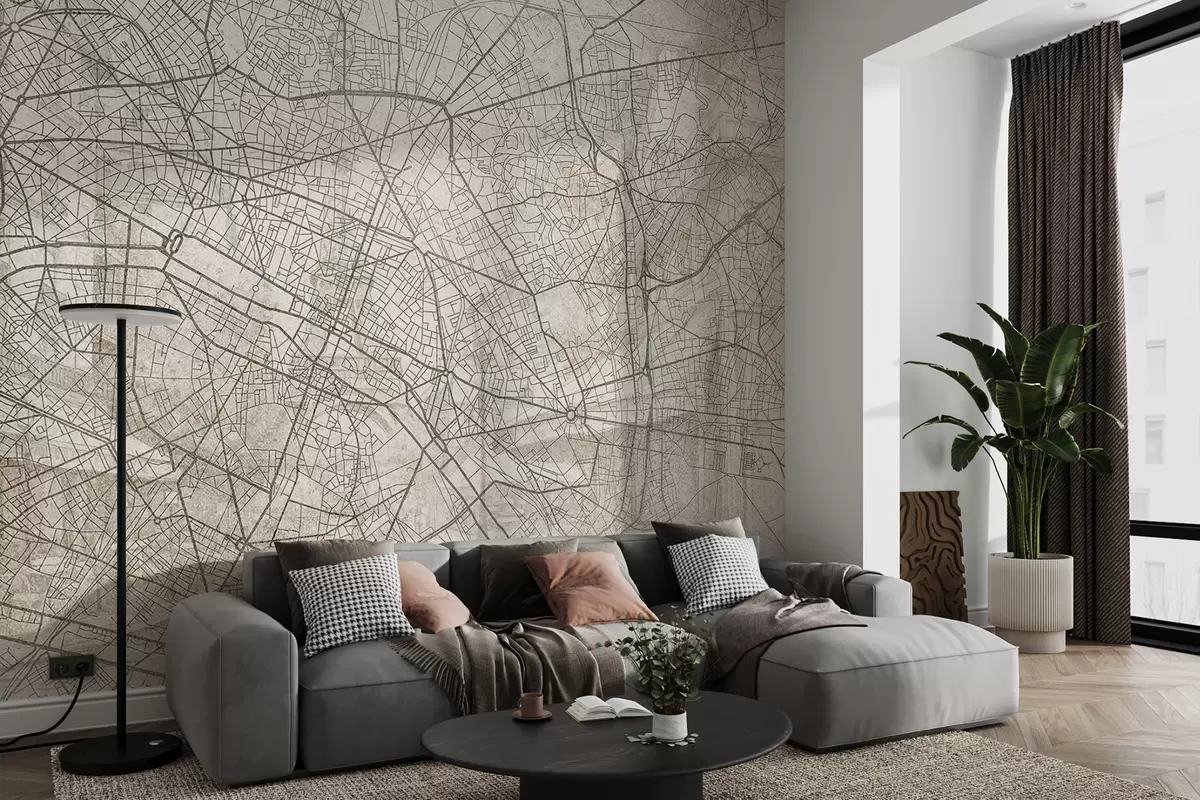 Фототапет Карта на Париж, линейна рисунка, архитектура, Франция, бежови цветове Nr w01697