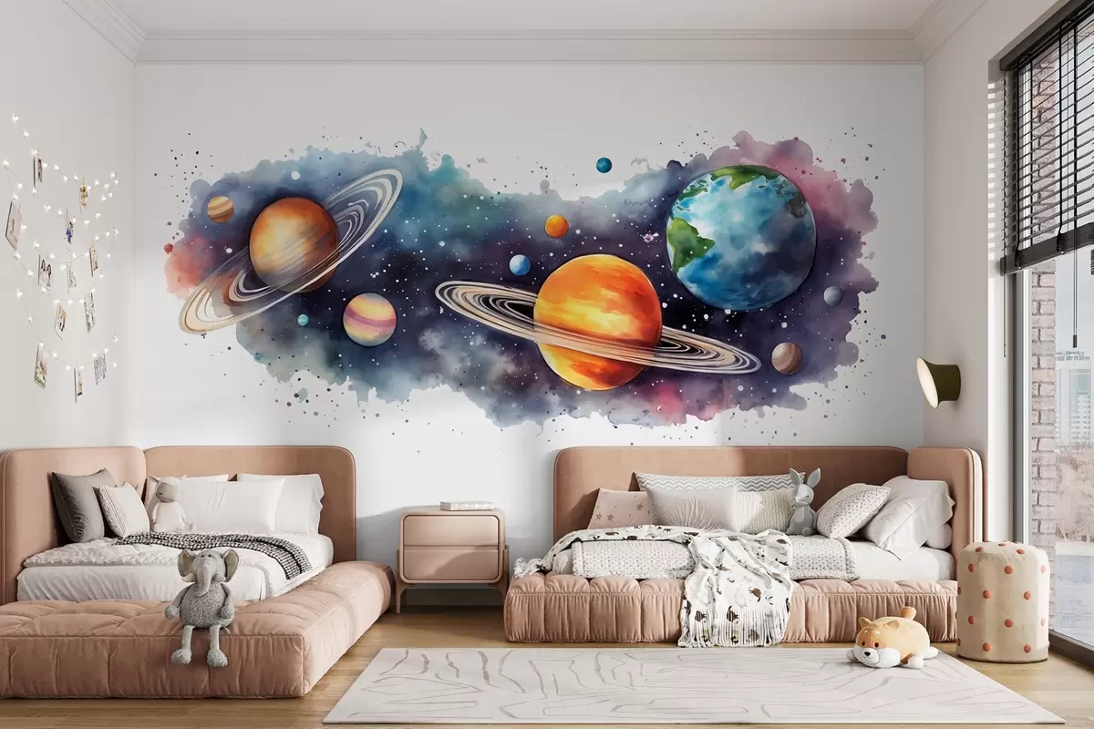 Фототапет Акварел планети, космос, космически, Земя, Сатурн Nr w01802