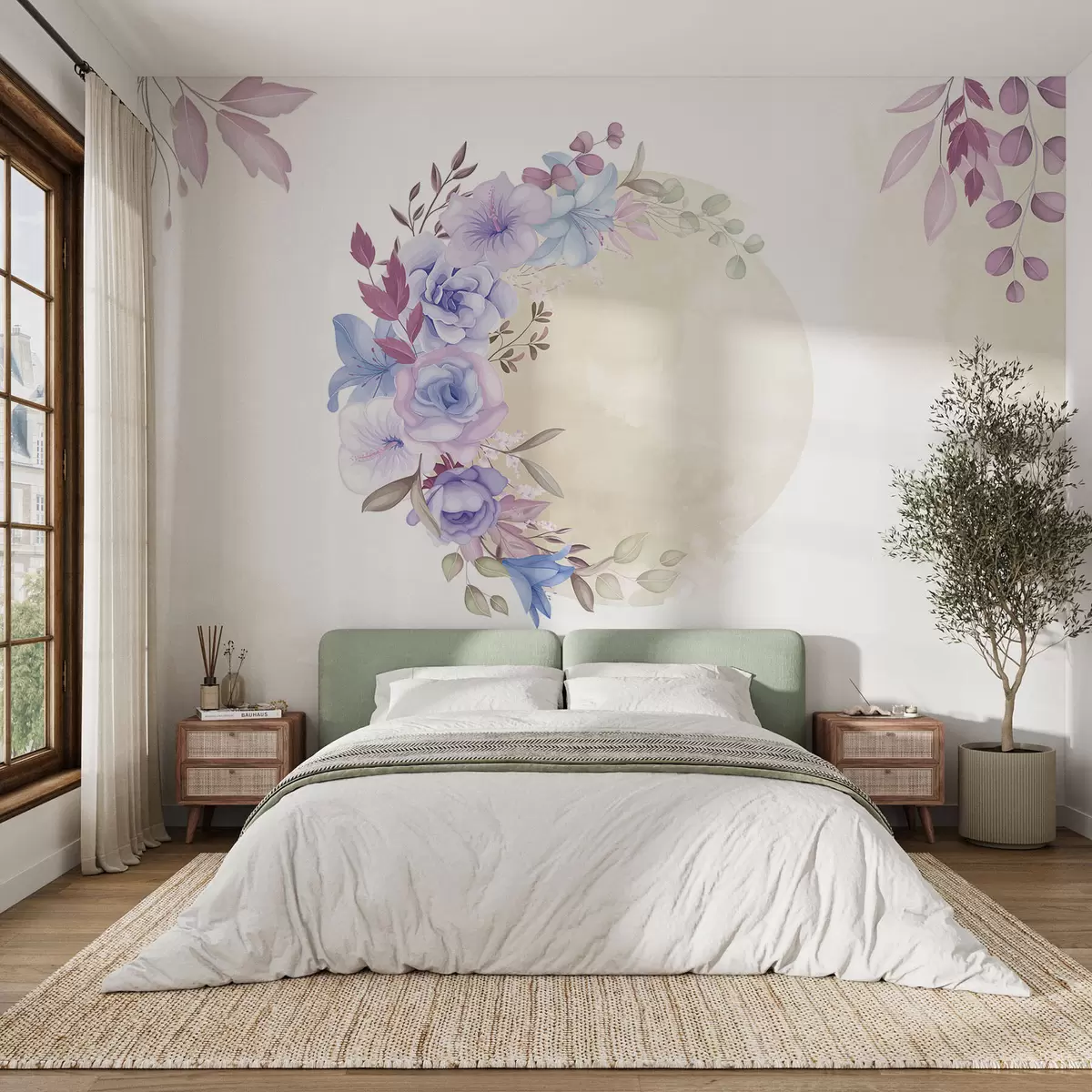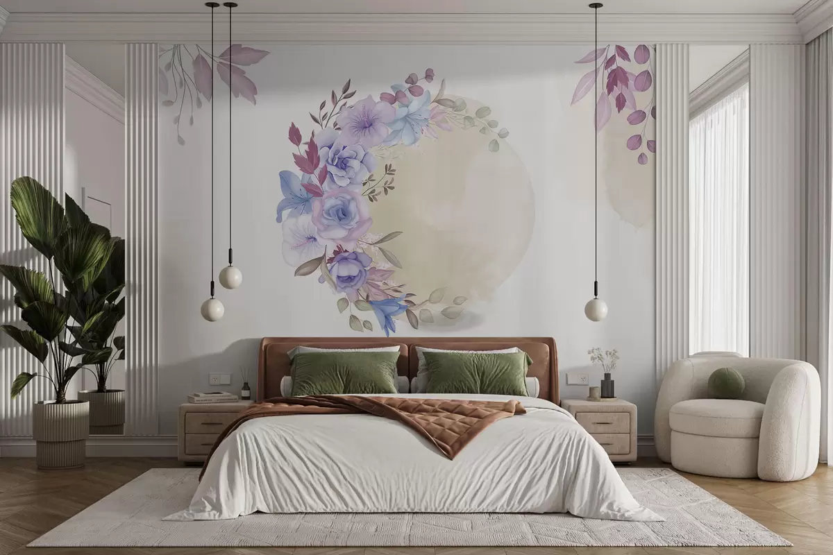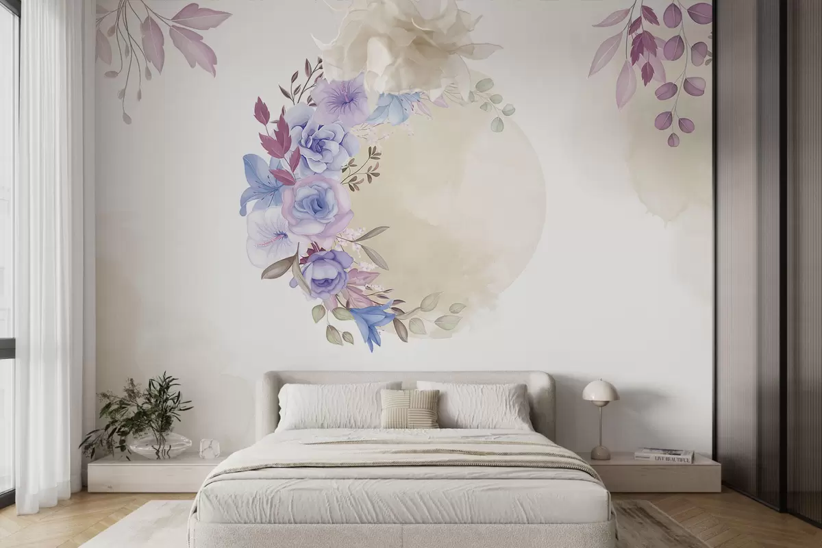 Фототапет Деликатни цветя с форма на полумесец в акварелен стил с бежови петна Nr w01874