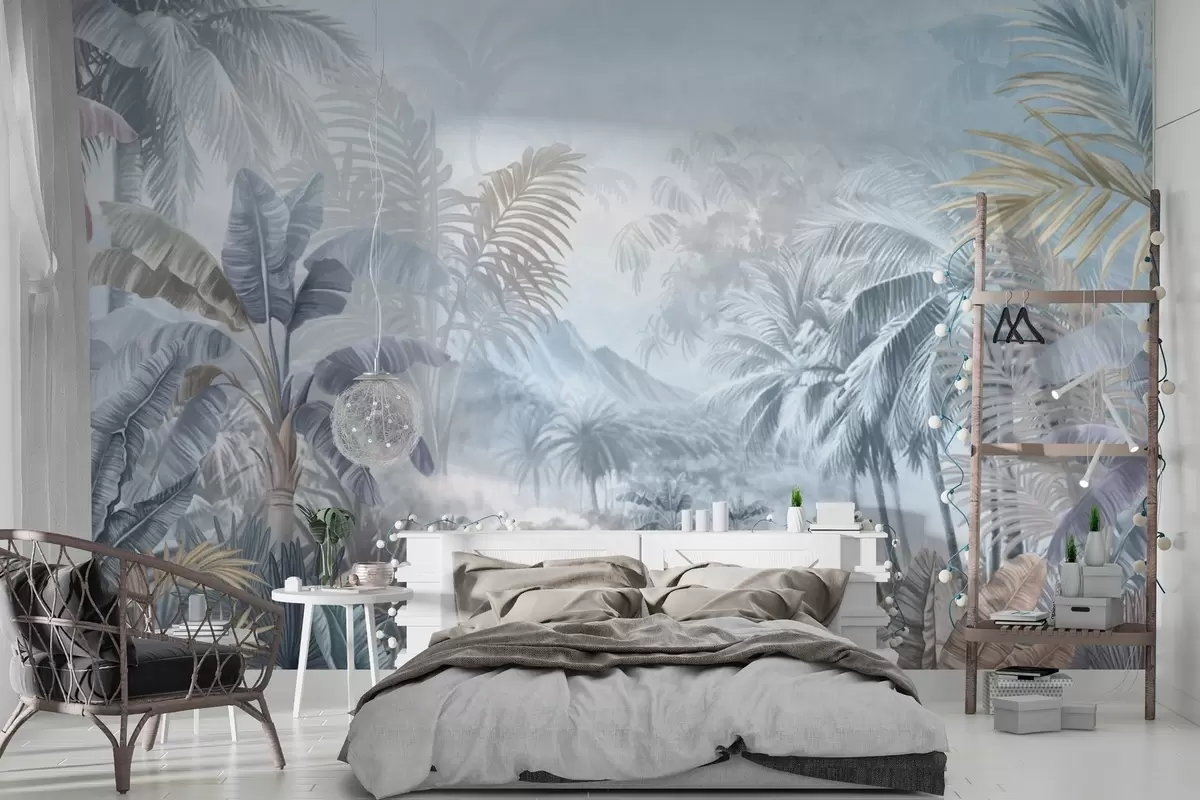Фототапет Тропическа гора в меки сини тонове Nr w01931