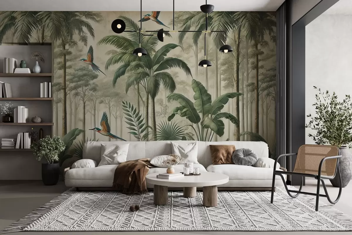 Фототапет Панорама с тропически пейзаж и птици Nr w01957