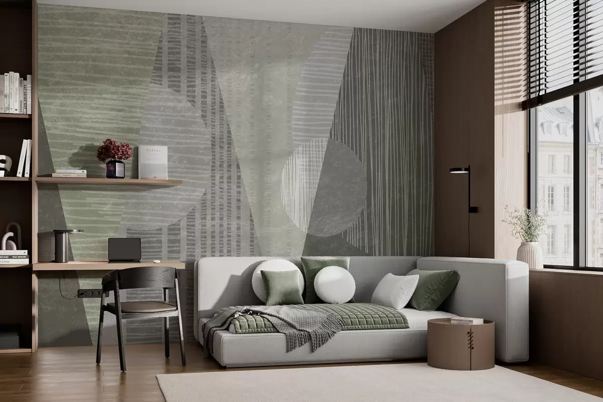 Фототапет Модерна геометрия във винтидж стил в зелени цветове Nr w02003v2