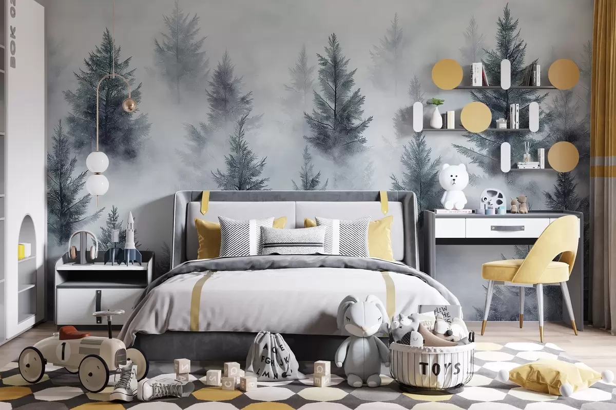 Фототапет Красива гора с борови дървета, мъгла, природни пейзажи, сиви цветове Nr w02222v2