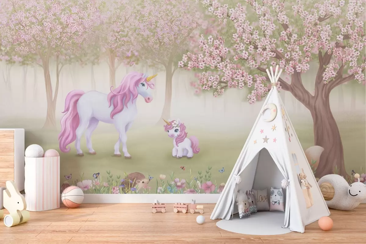 Фототапет Еднорози в магическа гора с животни Nr w02269