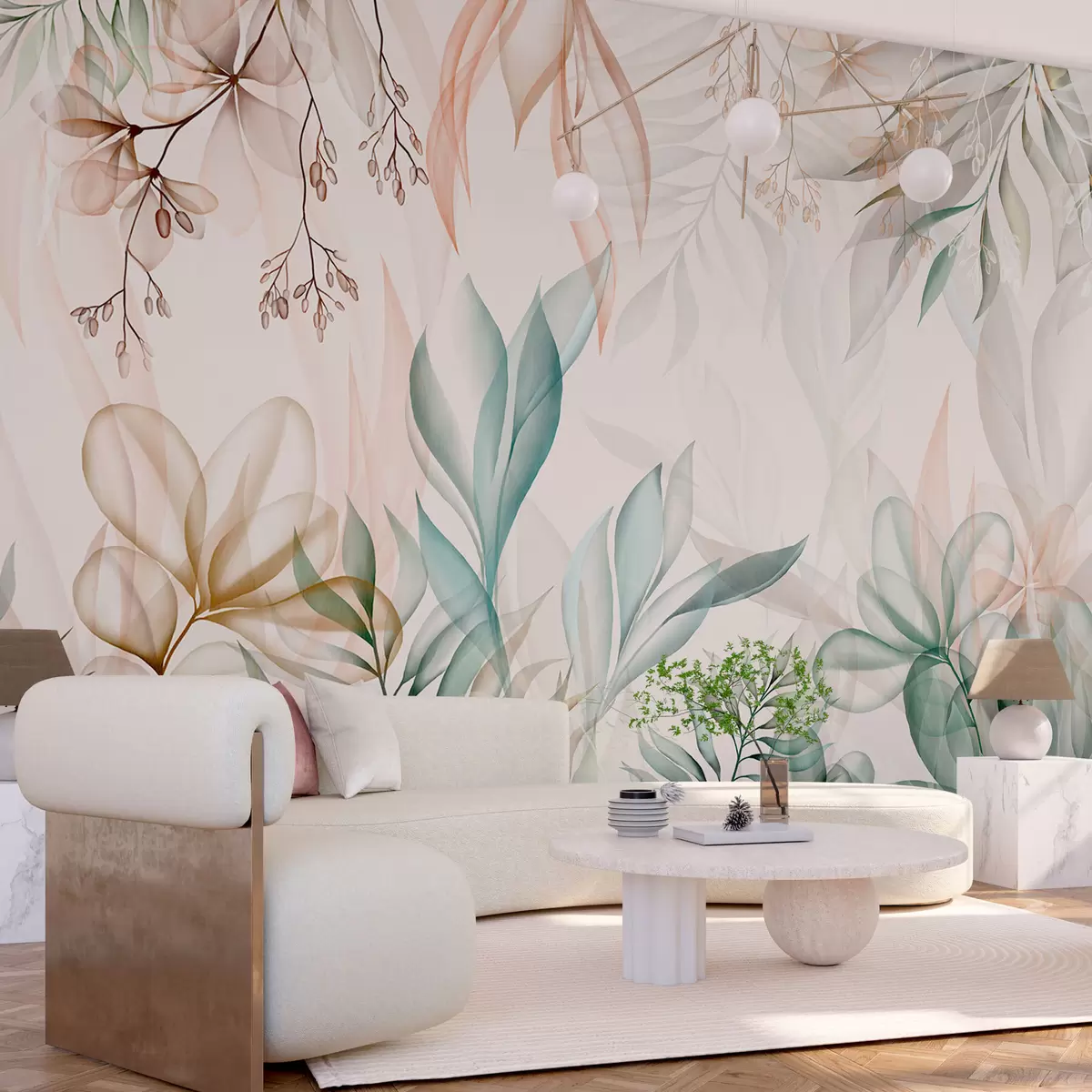 Фототапет Деликатни тропически листа в пастелни цветове Nr w02316